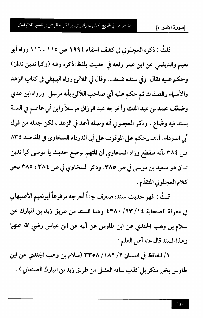 منة الرحمن في تخريج أحاديث وآثار تيسير الكريم الرحمن في تفسير كلام المنان