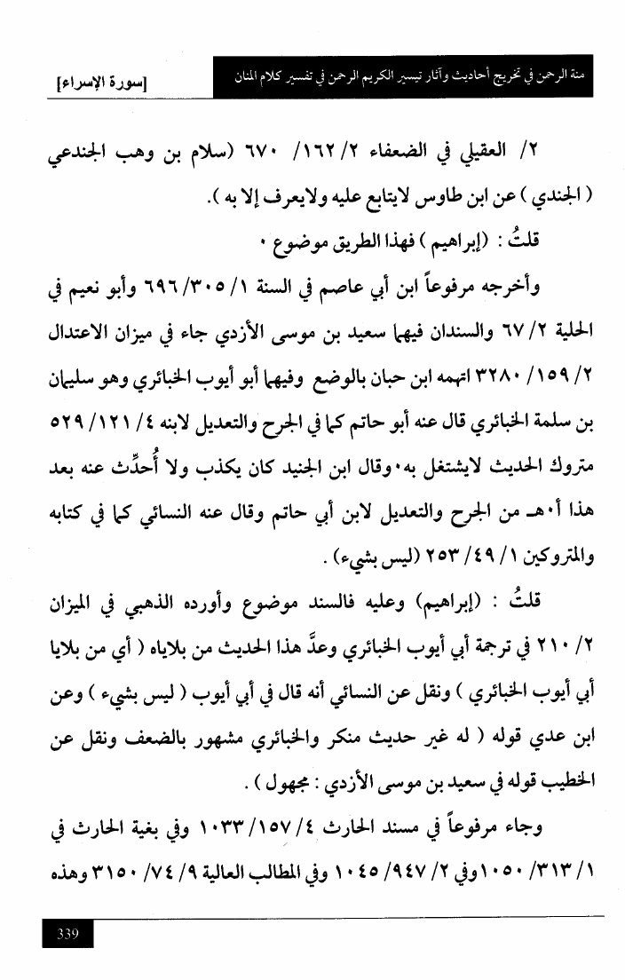 منة الرحمن في تخريج أحاديث وآثار تيسير الكريم الرحمن في تفسير كلام المنان