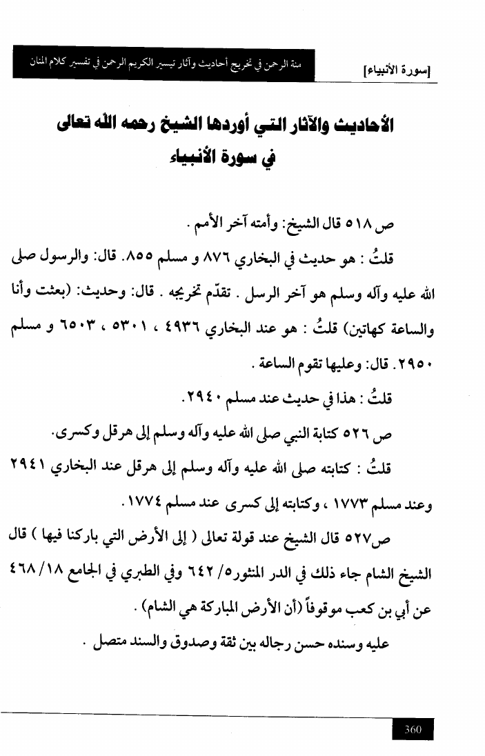 منة الرحمن في تخريج أحاديث وآثار تيسير الكريم الرحمن في تفسير كلام المنان
