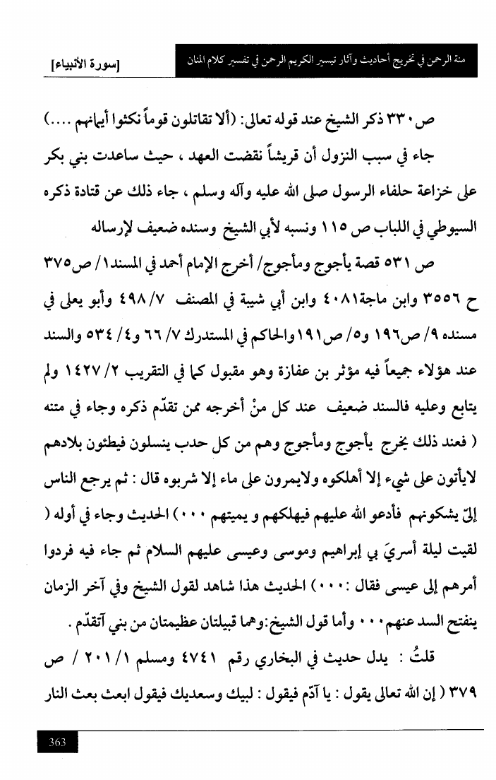 منة الرحمن في تخريج أحاديث وآثار تيسير الكريم الرحمن في تفسير كلام المنان