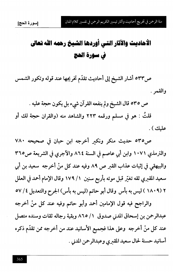 منة الرحمن في تخريج أحاديث وآثار تيسير الكريم الرحمن في تفسير كلام المنان