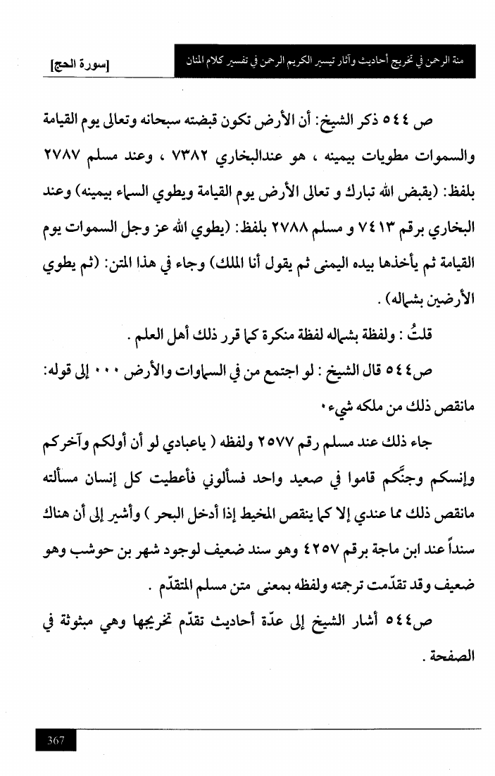 منة الرحمن في تخريج أحاديث وآثار تيسير الكريم الرحمن في تفسير كلام المنان