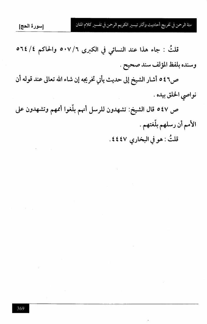 منة الرحمن في تخريج أحاديث وآثار تيسير الكريم الرحمن في تفسير كلام المنان