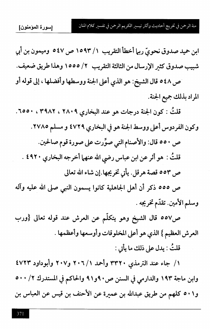 منة الرحمن في تخريج أحاديث وآثار تيسير الكريم الرحمن في تفسير كلام المنان