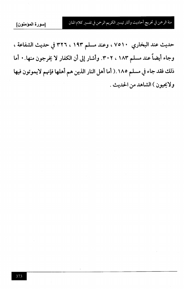 منة الرحمن في تخريج أحاديث وآثار تيسير الكريم الرحمن في تفسير كلام المنان