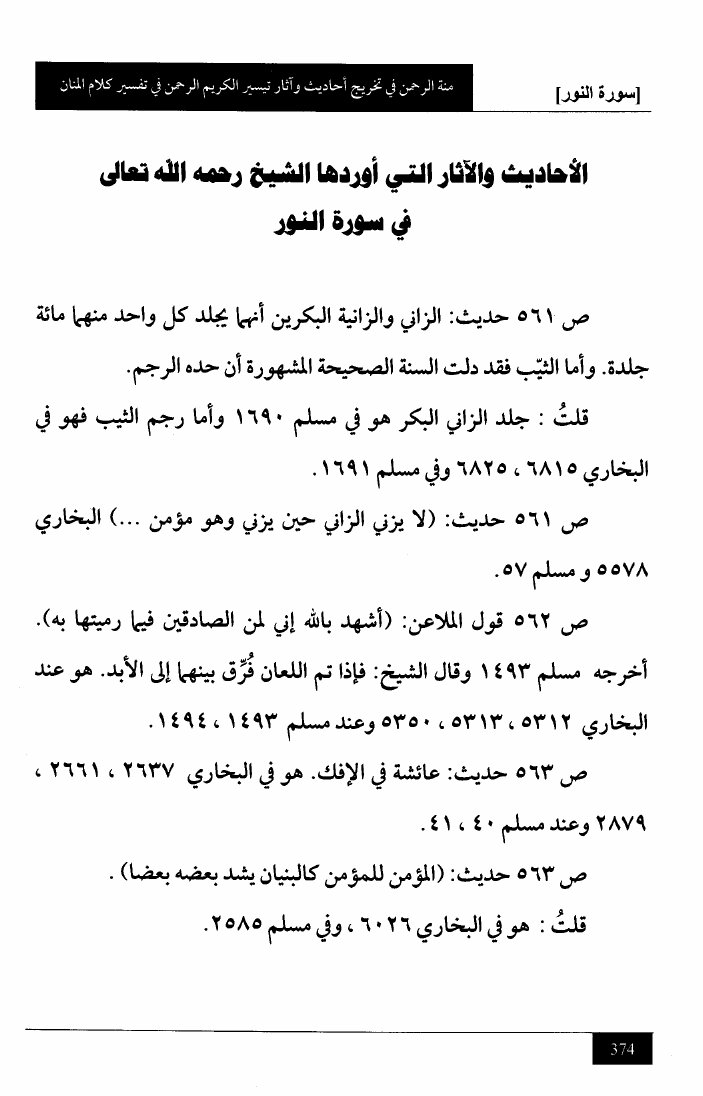 منة الرحمن في تخريج أحاديث وآثار تيسير الكريم الرحمن في تفسير كلام المنان