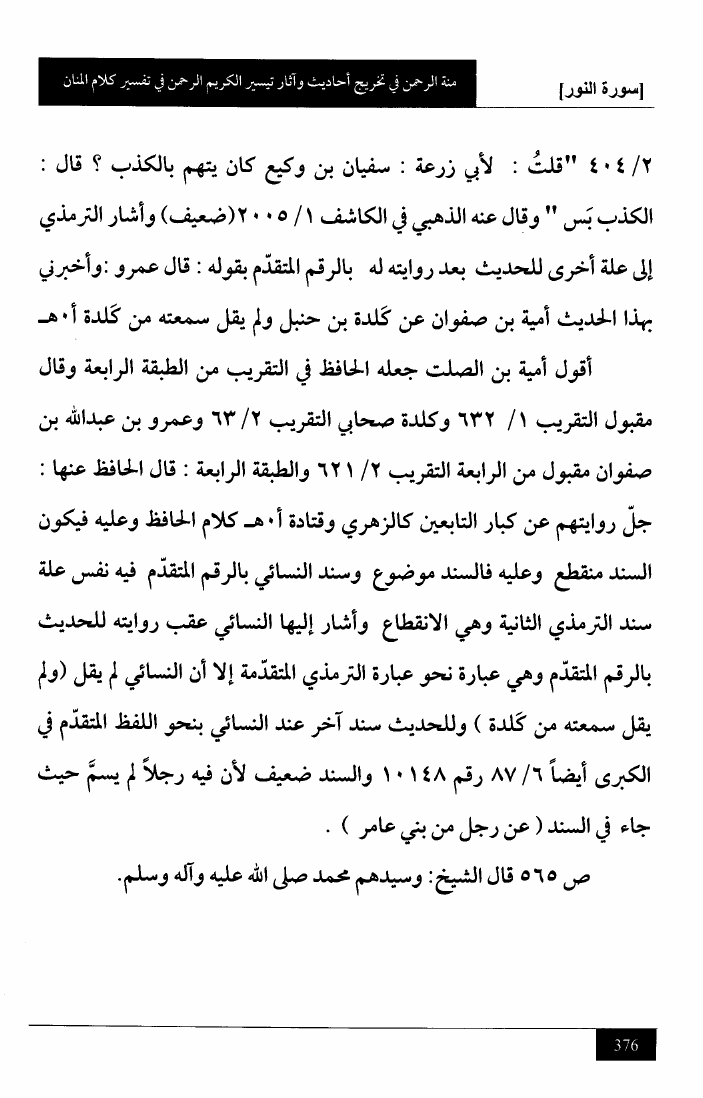 منة الرحمن في تخريج أحاديث وآثار تيسير الكريم الرحمن في تفسير كلام المنان