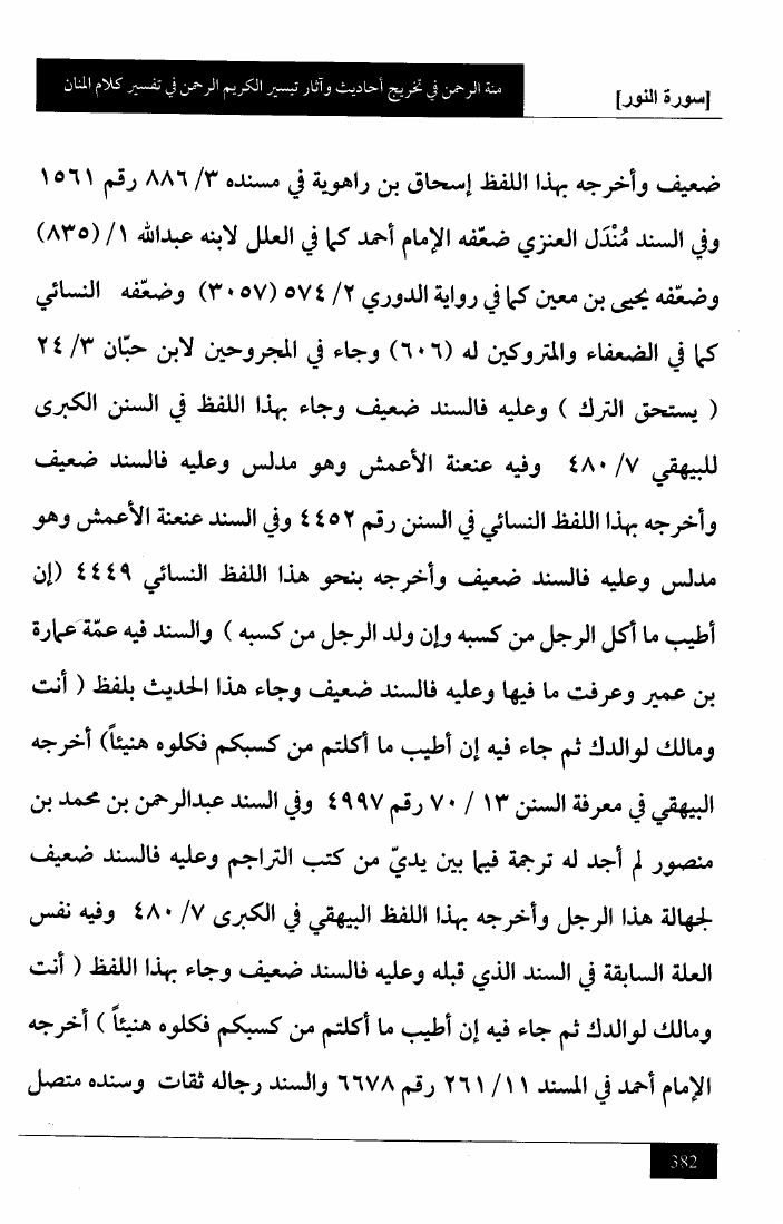 منة الرحمن في تخريج أحاديث وآثار تيسير الكريم الرحمن في تفسير كلام المنان