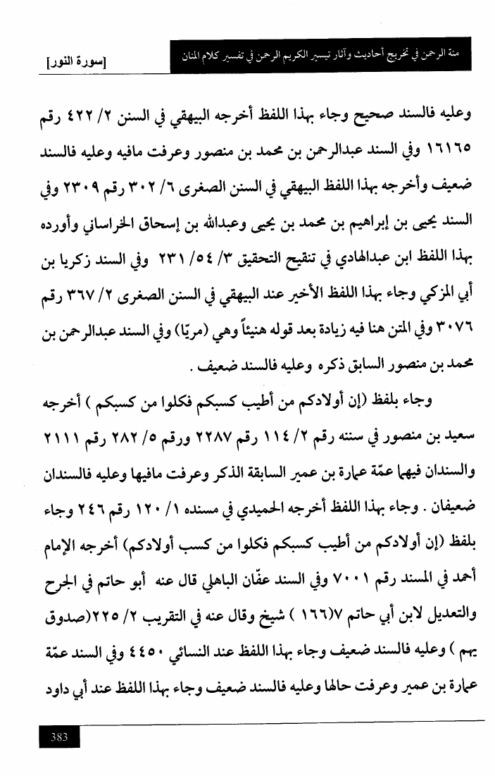 منة الرحمن في تخريج أحاديث وآثار تيسير الكريم الرحمن في تفسير كلام المنان