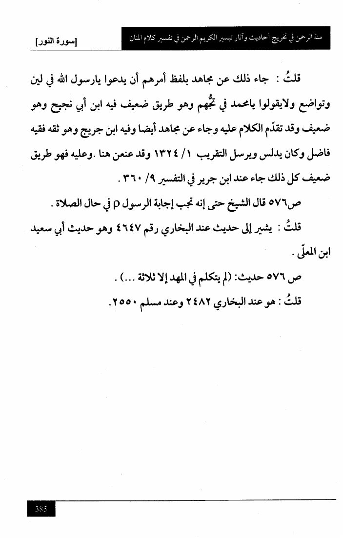 منة الرحمن في تخريج أحاديث وآثار تيسير الكريم الرحمن في تفسير كلام المنان