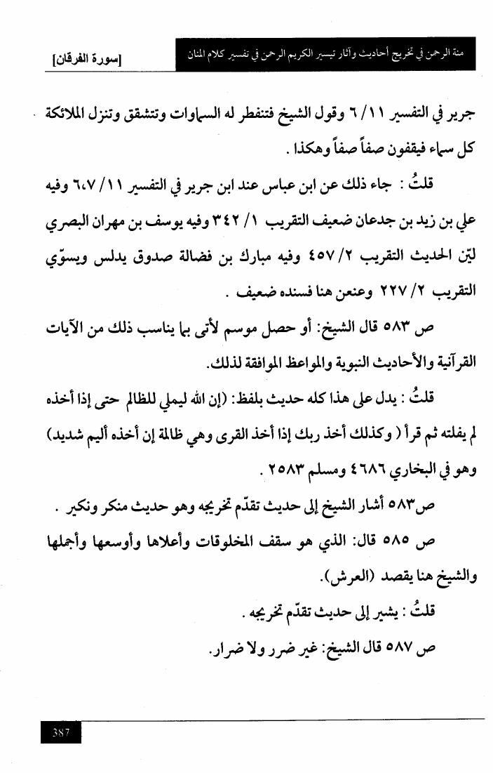 منة الرحمن في تخريج أحاديث وآثار تيسير الكريم الرحمن في تفسير كلام المنان