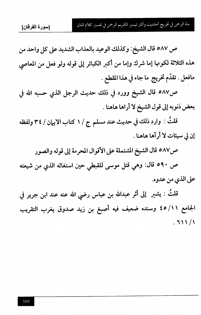 منة الرحمن في تخريج أحاديث وآثار تيسير الكريم الرحمن في تفسير كلام المنان