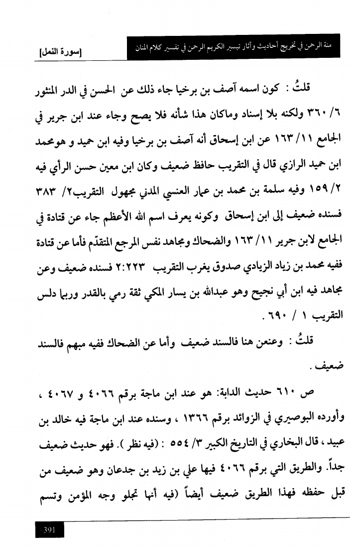 منة الرحمن في تخريج أحاديث وآثار تيسير الكريم الرحمن في تفسير كلام المنان