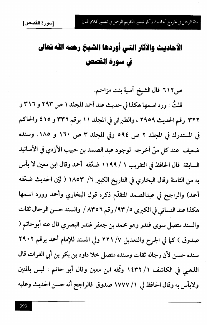 منة الرحمن في تخريج أحاديث وآثار تيسير الكريم الرحمن في تفسير كلام المنان
