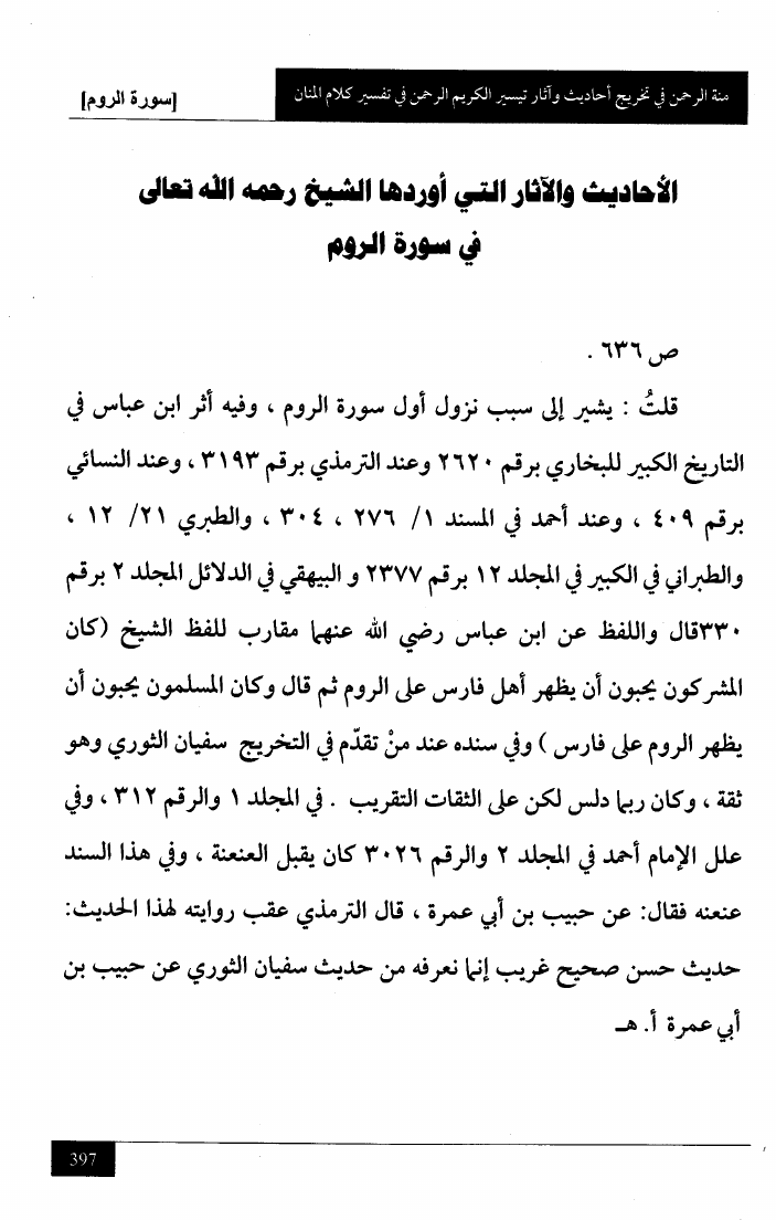منة الرحمن في تخريج أحاديث وآثار تيسير الكريم الرحمن في تفسير كلام المنان