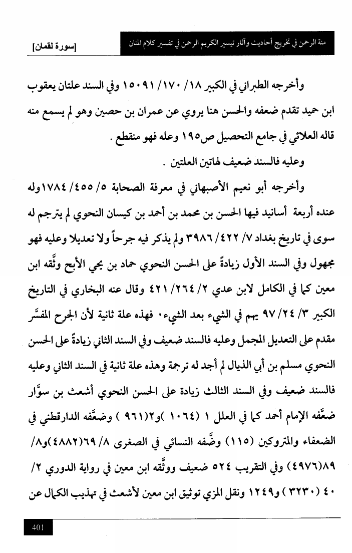 منة الرحمن في تخريج أحاديث وآثار تيسير الكريم الرحمن في تفسير كلام المنان