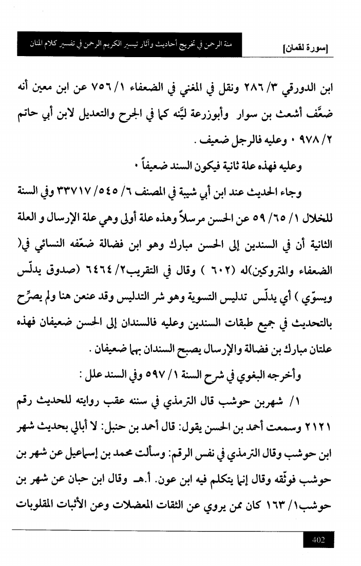 منة الرحمن في تخريج أحاديث وآثار تيسير الكريم الرحمن في تفسير كلام المنان