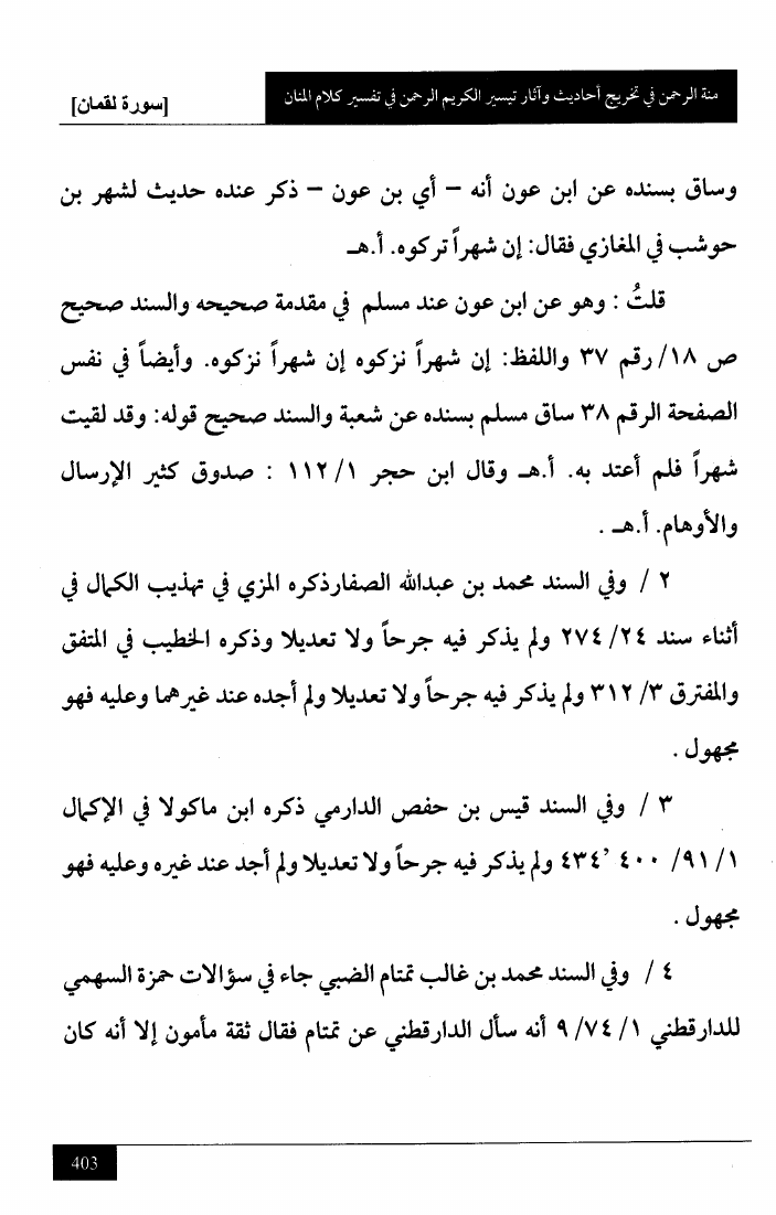 منة الرحمن في تخريج أحاديث وآثار تيسير الكريم الرحمن في تفسير كلام المنان