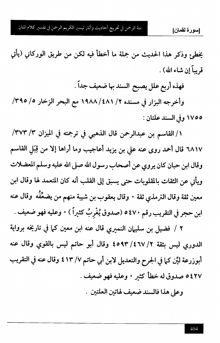 منة الرحمن في تخريج أحاديث وآثار تيسير الكريم الرحمن في تفسير كلام المنان