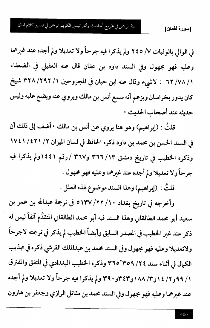 منة الرحمن في تخريج أحاديث وآثار تيسير الكريم الرحمن في تفسير كلام المنان