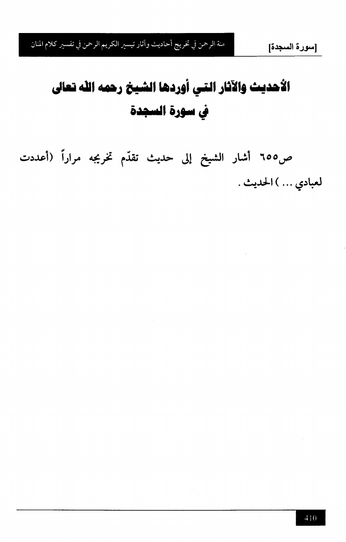 منة الرحمن في تخريج أحاديث وآثار تيسير الكريم الرحمن في تفسير كلام المنان