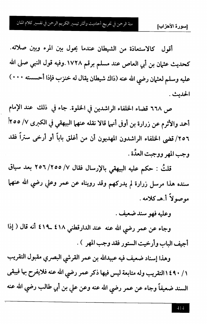 منة الرحمن في تخريج أحاديث وآثار تيسير الكريم الرحمن في تفسير كلام المنان