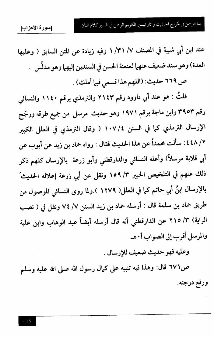منة الرحمن في تخريج أحاديث وآثار تيسير الكريم الرحمن في تفسير كلام المنان
