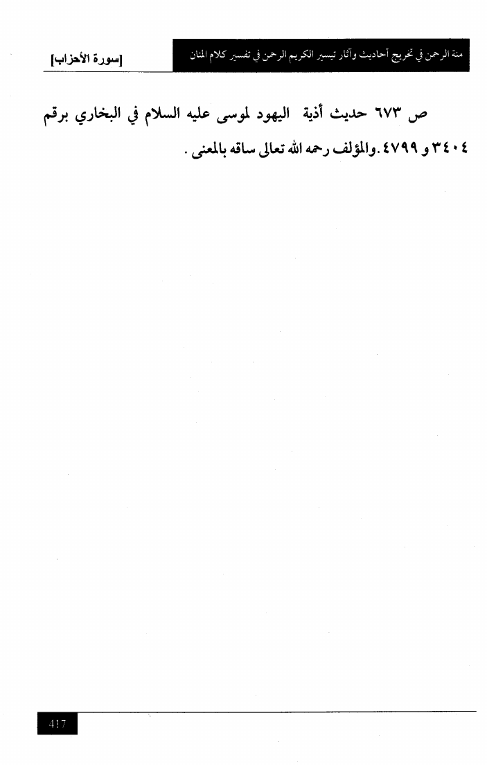 منة الرحمن في تخريج أحاديث وآثار تيسير الكريم الرحمن في تفسير كلام المنان