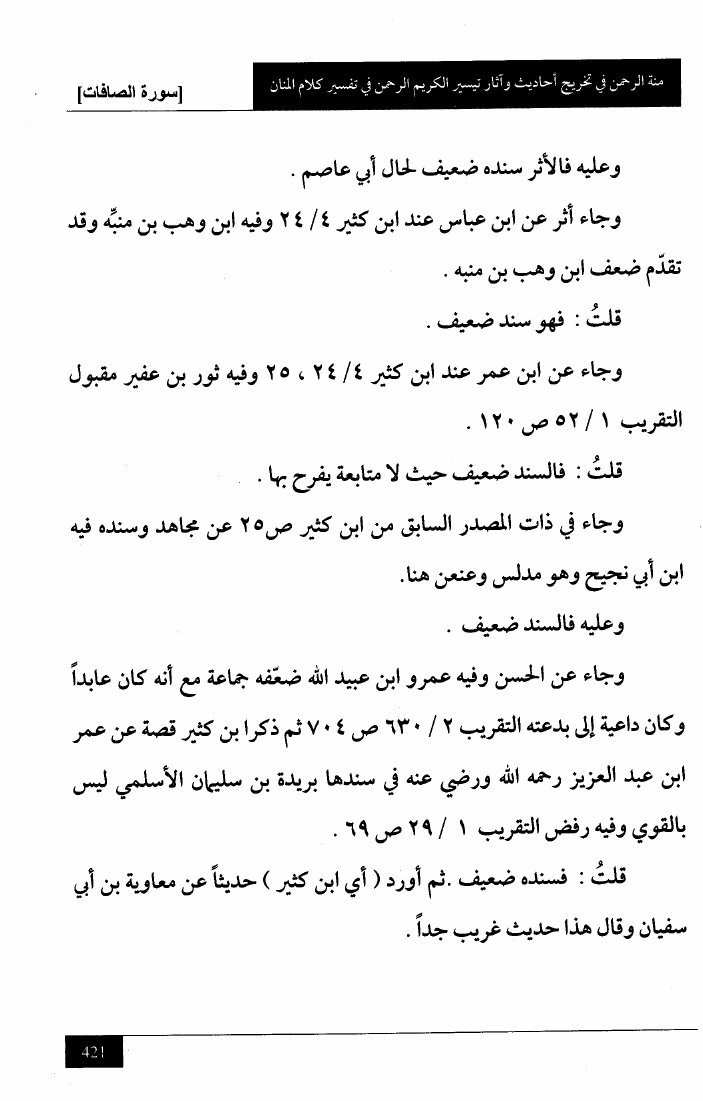 منة الرحمن في تخريج أحاديث وآثار تيسير الكريم الرحمن في تفسير كلام المنان