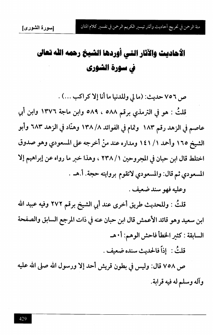 منة الرحمن في تخريج أحاديث وآثار تيسير الكريم الرحمن في تفسير كلام المنان