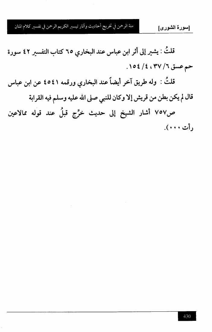 منة الرحمن في تخريج أحاديث وآثار تيسير الكريم الرحمن في تفسير كلام المنان