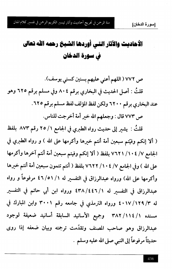 منة الرحمن في تخريج أحاديث وآثار تيسير الكريم الرحمن في تفسير كلام المنان