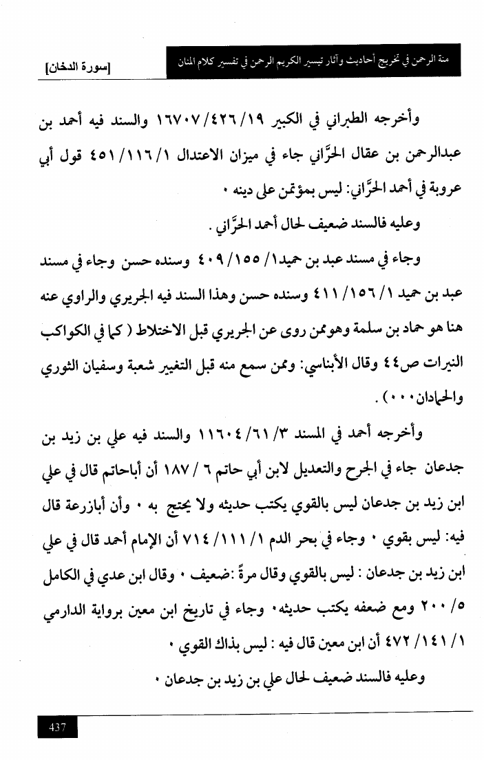 منة الرحمن في تخريج أحاديث وآثار تيسير الكريم الرحمن في تفسير كلام المنان