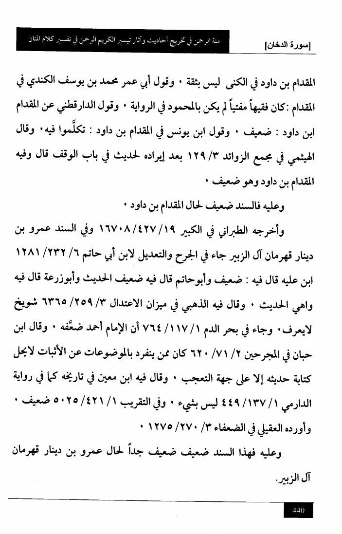 منة الرحمن في تخريج أحاديث وآثار تيسير الكريم الرحمن في تفسير كلام المنان