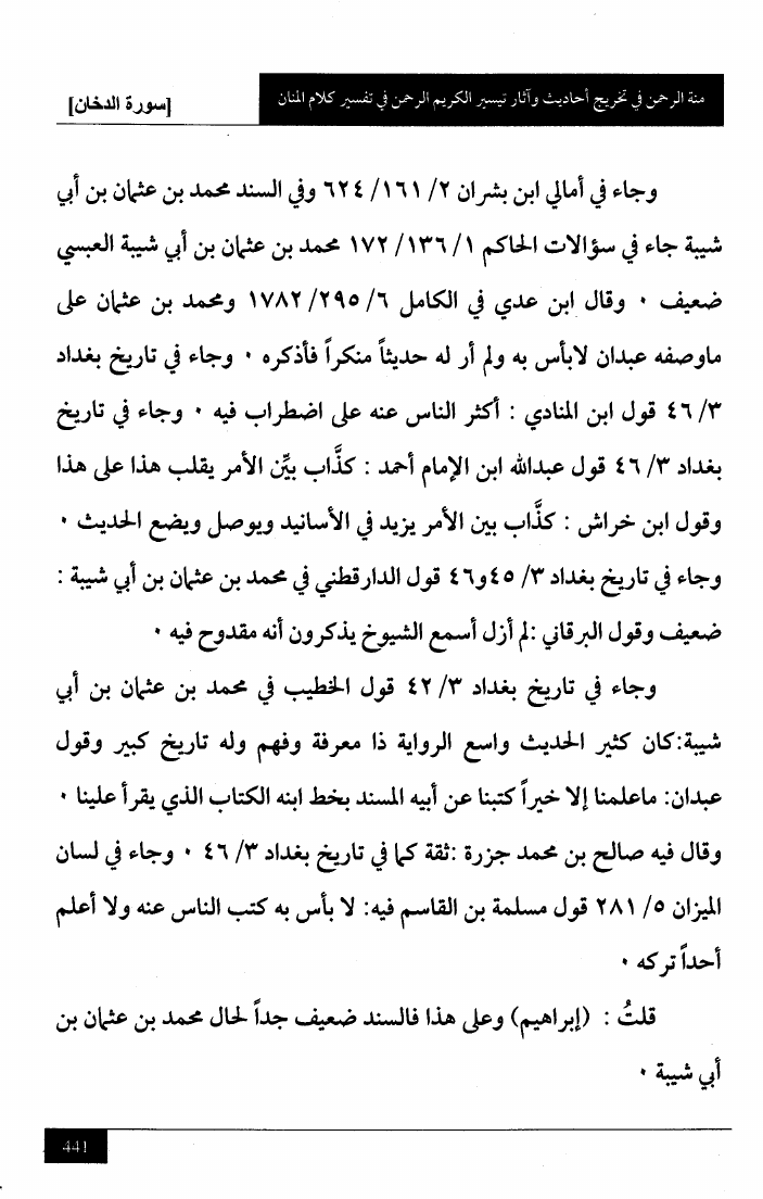 منة الرحمن في تخريج أحاديث وآثار تيسير الكريم الرحمن في تفسير كلام المنان