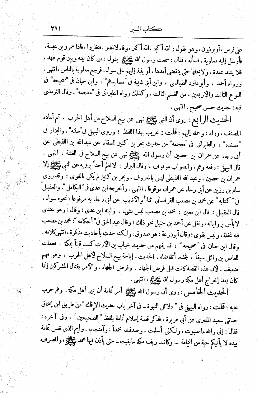 نام کتاب : نصب الراية لأحاديث الهداية، مع حاشيته النفيسة المهمة بغية الألمعي، ويليه منية الألمعي (ط. الأوقاف السعودية) نویسنده : عبد الله الزيلعي جمال الدين أبو محمد - قطلوبغا جلد : 3 صفحه : 391
