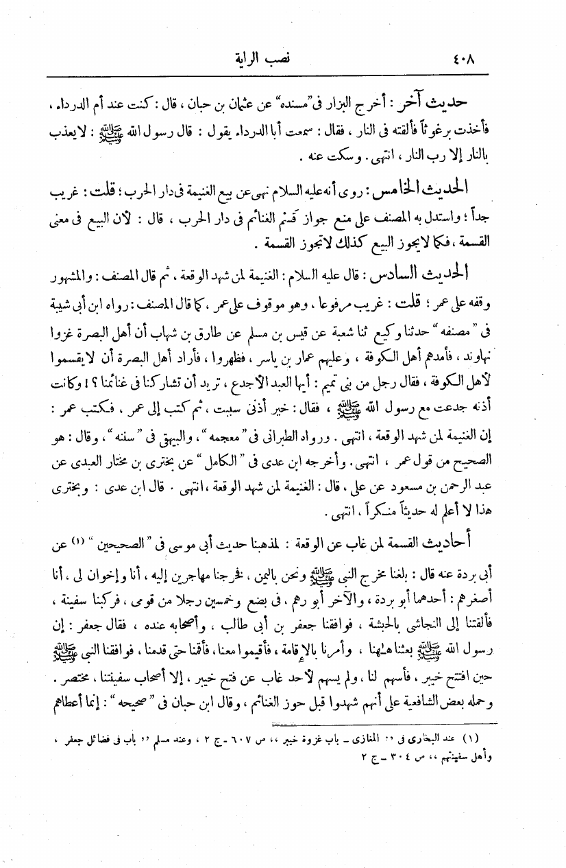 نام کتاب : نصب الراية لأحاديث الهداية، مع حاشيته النفيسة المهمة بغية الألمعي، ويليه منية الألمعي (ط. الأوقاف السعودية) نویسنده : عبد الله الزيلعي جمال الدين أبو محمد - قطلوبغا جلد : 3 صفحه : 408