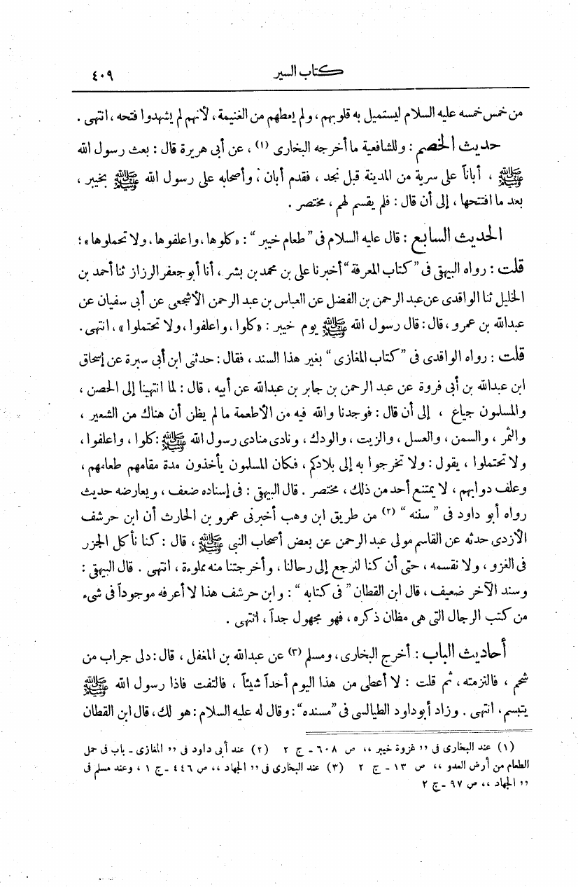 نام کتاب : نصب الراية لأحاديث الهداية، مع حاشيته النفيسة المهمة بغية الألمعي، ويليه منية الألمعي (ط. الأوقاف السعودية) نویسنده : عبد الله الزيلعي جمال الدين أبو محمد - قطلوبغا جلد : 3 صفحه : 409