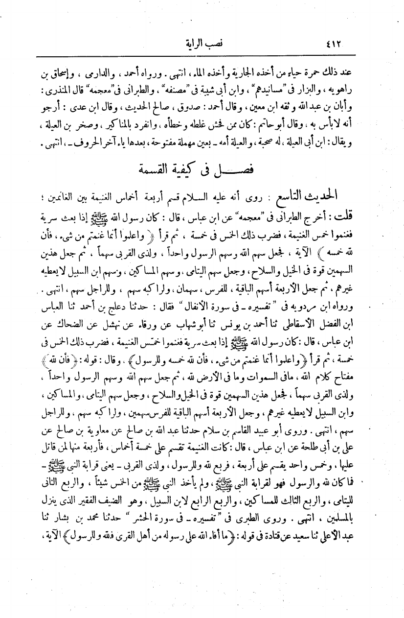 نام کتاب : نصب الراية لأحاديث الهداية، مع حاشيته النفيسة المهمة بغية الألمعي، ويليه منية الألمعي (ط. الأوقاف السعودية) نویسنده : عبد الله الزيلعي جمال الدين أبو محمد - قطلوبغا جلد : 3 صفحه : 412