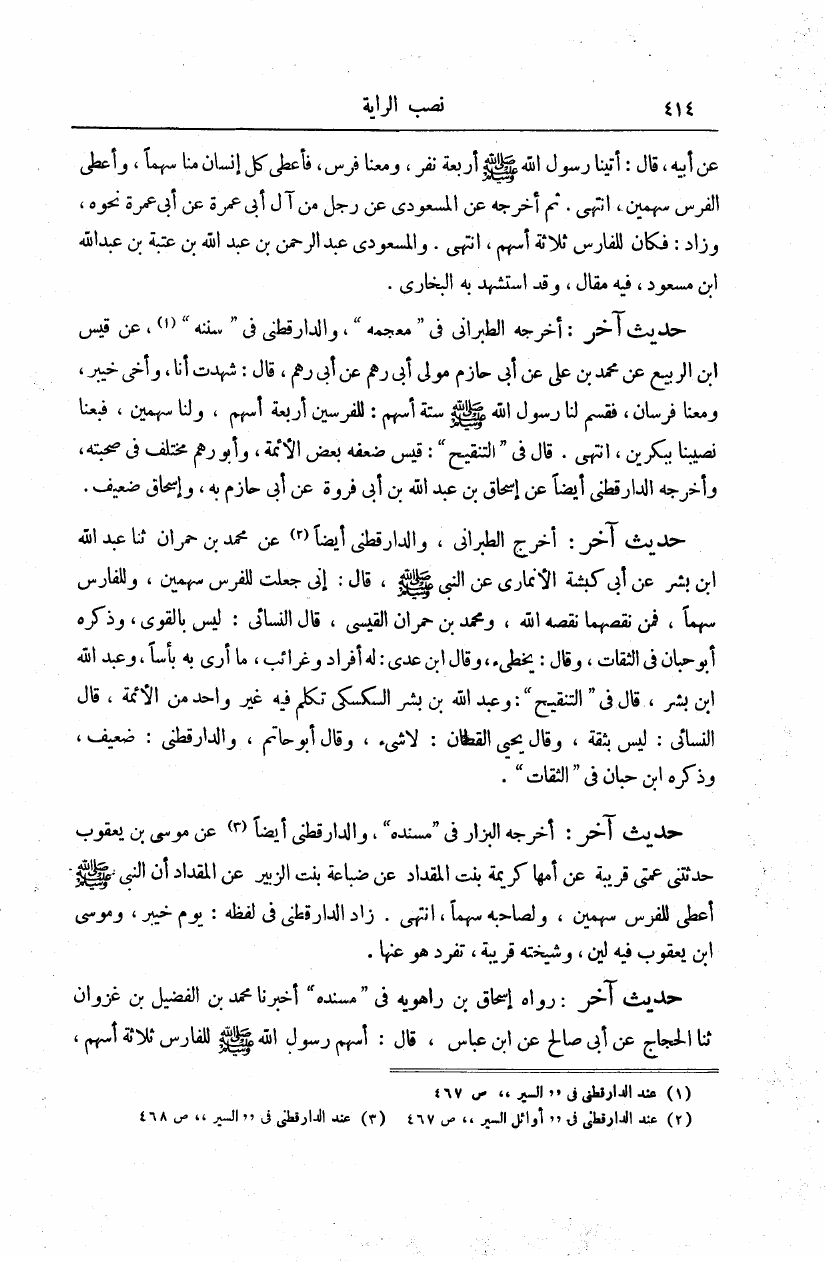 نام کتاب : نصب الراية لأحاديث الهداية، مع حاشيته النفيسة المهمة بغية الألمعي، ويليه منية الألمعي (ط. الأوقاف السعودية) نویسنده : عبد الله الزيلعي جمال الدين أبو محمد - قطلوبغا جلد : 3 صفحه : 414