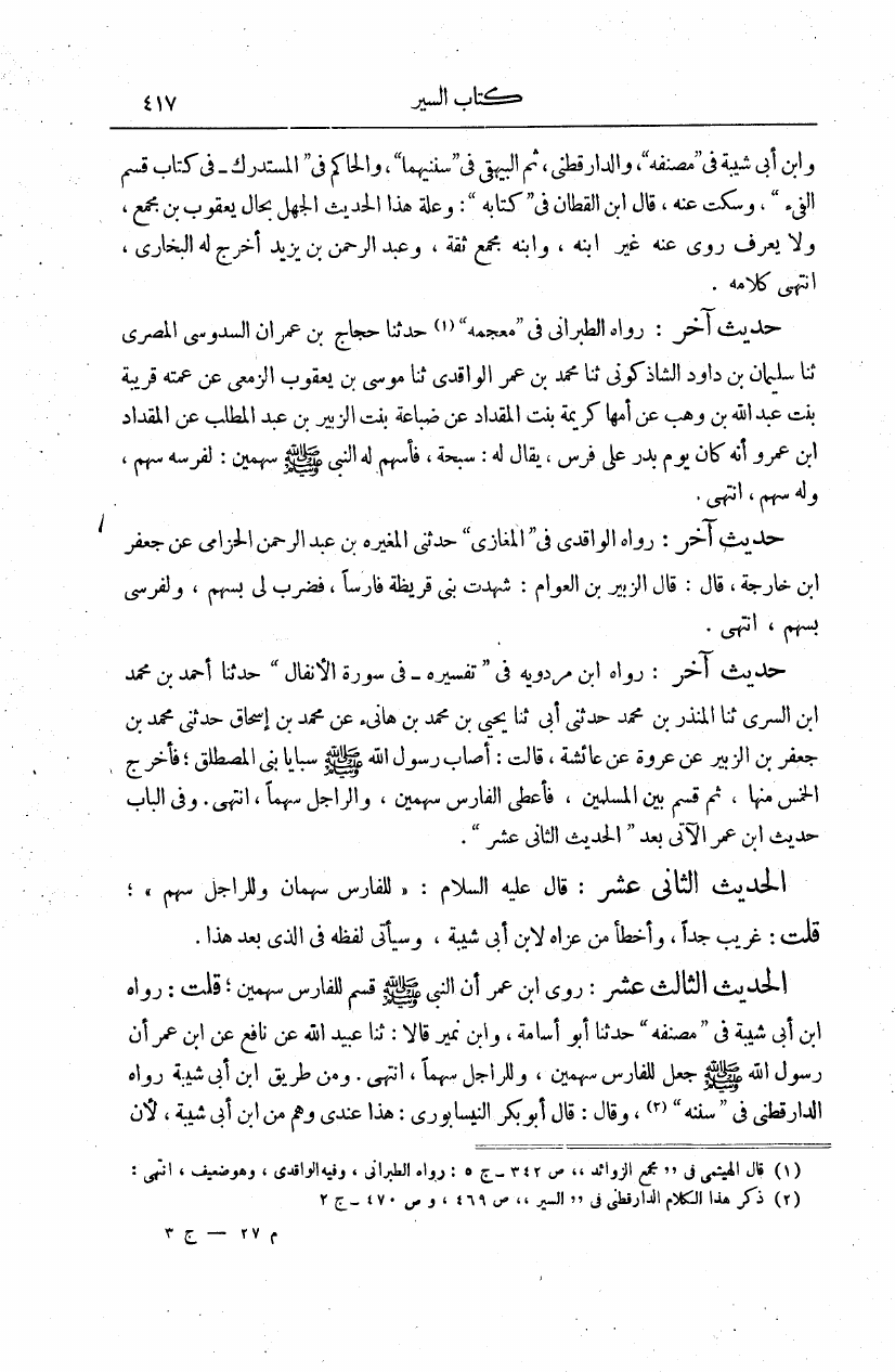 نام کتاب : نصب الراية لأحاديث الهداية، مع حاشيته النفيسة المهمة بغية الألمعي، ويليه منية الألمعي (ط. الأوقاف السعودية) نویسنده : عبد الله الزيلعي جمال الدين أبو محمد - قطلوبغا جلد : 3 صفحه : 417