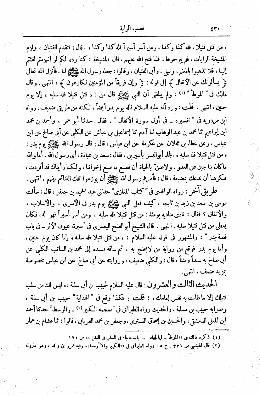 نام کتاب : نصب الراية لأحاديث الهداية، مع حاشيته النفيسة المهمة بغية الألمعي، ويليه منية الألمعي (ط. الأوقاف السعودية) نویسنده : عبد الله الزيلعي جمال الدين أبو محمد - قطلوبغا جلد : 3 صفحه : 430