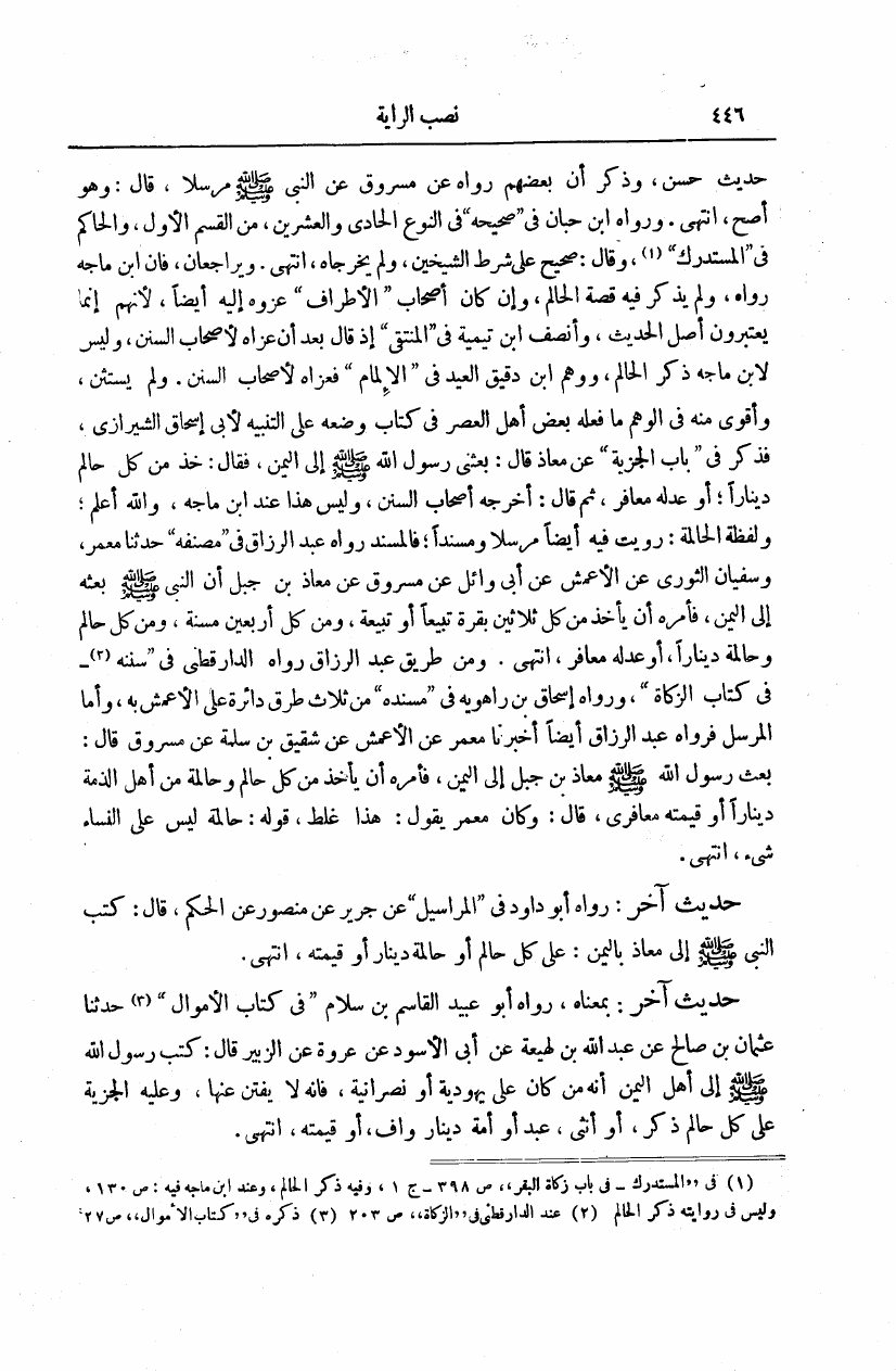 نام کتاب : نصب الراية لأحاديث الهداية، مع حاشيته النفيسة المهمة بغية الألمعي، ويليه منية الألمعي (ط. الأوقاف السعودية) نویسنده : عبد الله الزيلعي جمال الدين أبو محمد - قطلوبغا جلد : 3 صفحه : 446