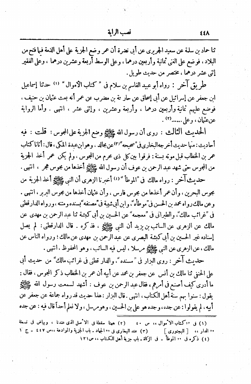 نام کتاب : نصب الراية لأحاديث الهداية، مع حاشيته النفيسة المهمة بغية الألمعي، ويليه منية الألمعي (ط. الأوقاف السعودية) نویسنده : عبد الله الزيلعي جمال الدين أبو محمد - قطلوبغا جلد : 3 صفحه : 448
