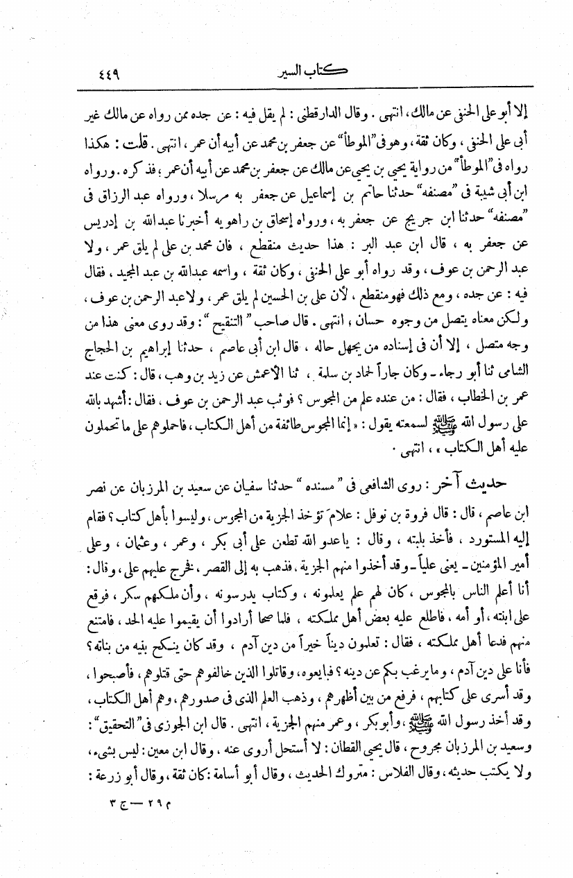 نام کتاب : نصب الراية لأحاديث الهداية، مع حاشيته النفيسة المهمة بغية الألمعي، ويليه منية الألمعي (ط. الأوقاف السعودية) نویسنده : عبد الله الزيلعي جمال الدين أبو محمد - قطلوبغا جلد : 3 صفحه : 449