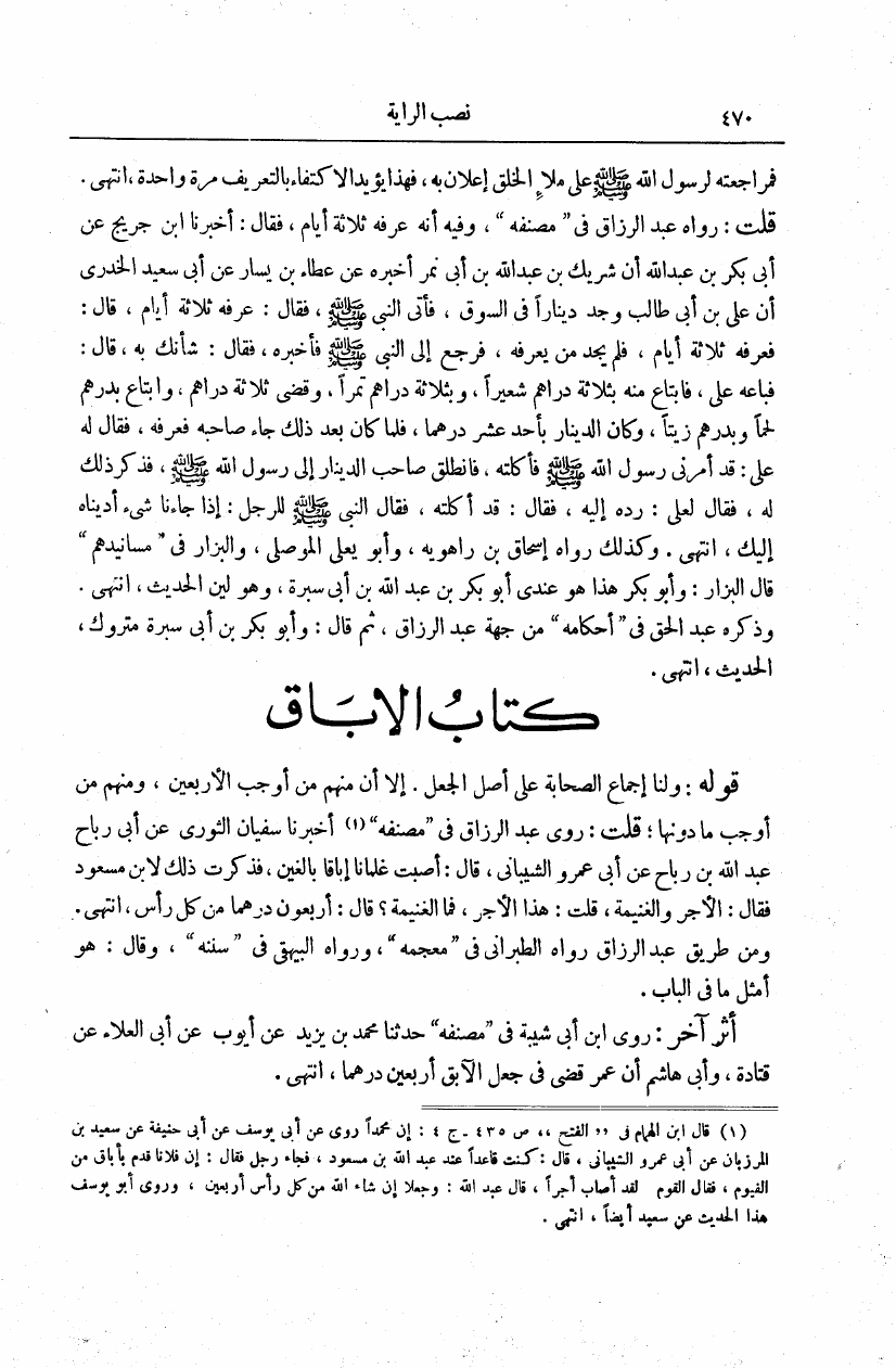 نام کتاب : نصب الراية لأحاديث الهداية، مع حاشيته النفيسة المهمة بغية الألمعي، ويليه منية الألمعي (ط. الأوقاف السعودية) نویسنده : عبد الله الزيلعي جمال الدين أبو محمد - قطلوبغا جلد : 3 صفحه : 470