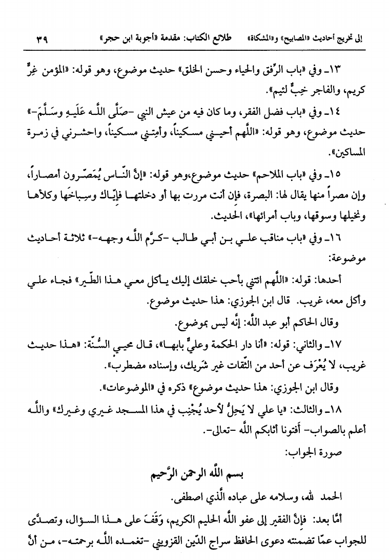 علي بن أحمد بن حجر العسقلاني - محمد ناصر الدين الألباني