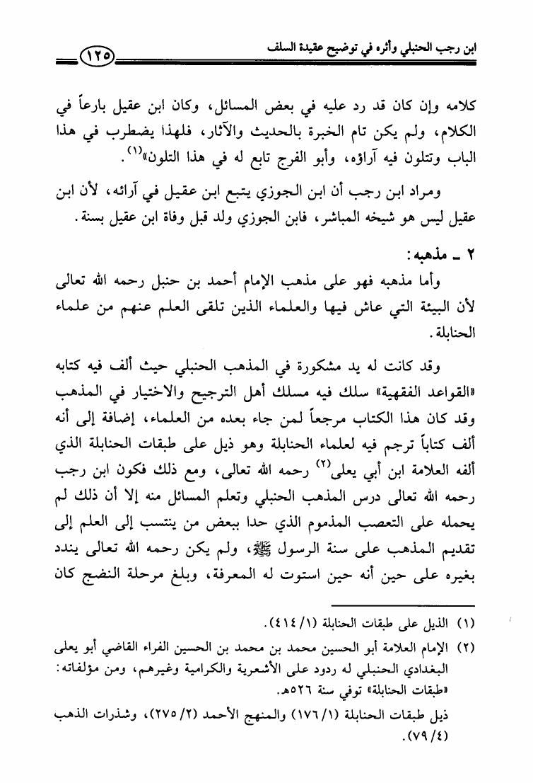 ابن رجب الحنبلي وأثره في توضيح عقيدة السلف