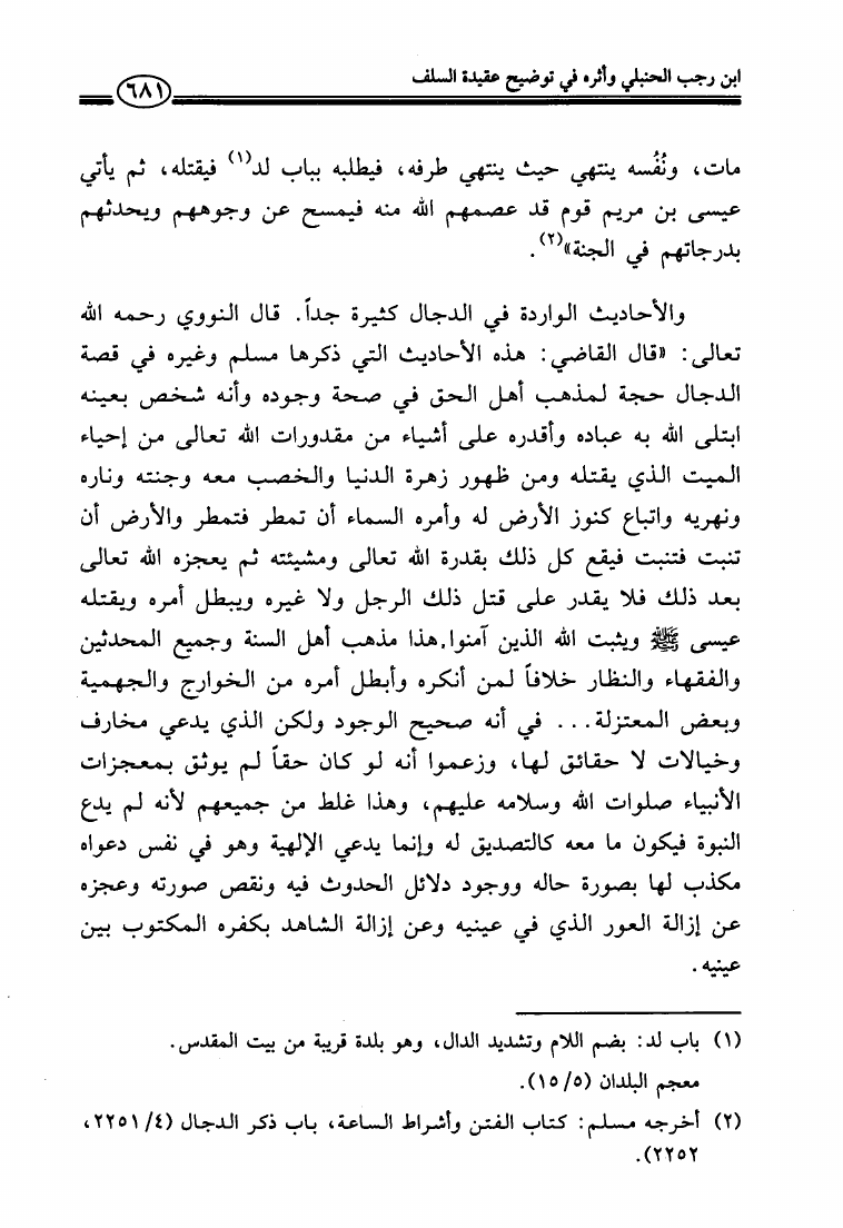 ابن رجب الحنبلي وأثره في توضيح عقيدة السلف