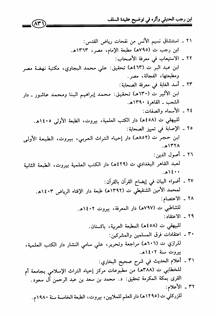 ابن رجب الحنبلي وأثره في توضيح عقيدة السلف